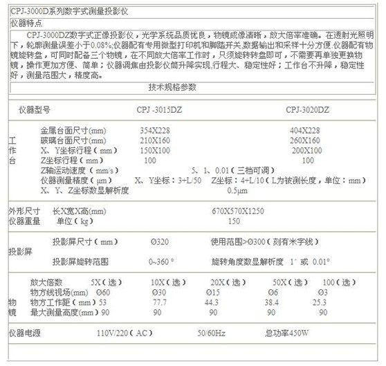 CPJ 3025A高精度反向投影儀系列